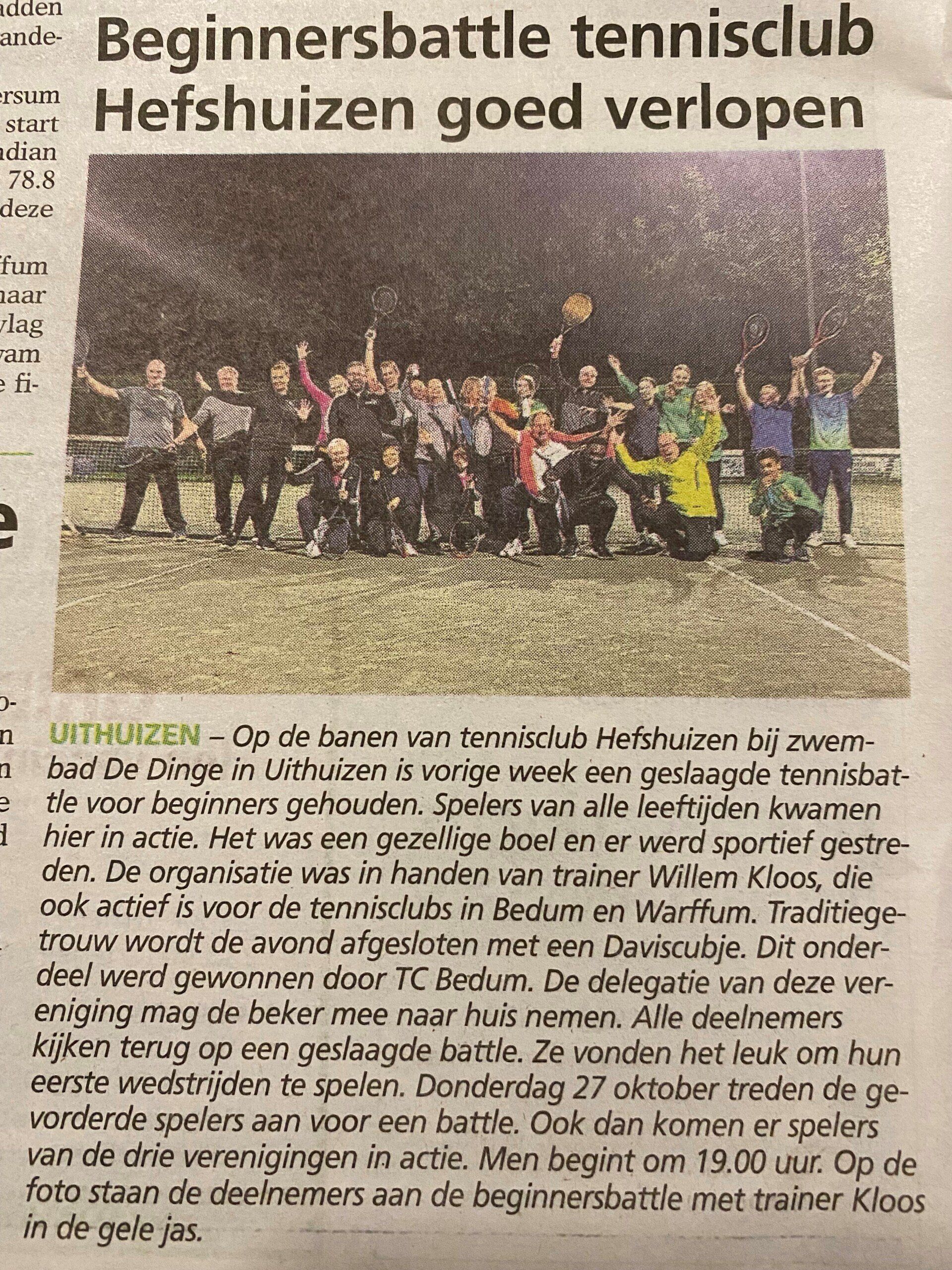 Op donderdagavond 13 en 27 oktober 2022 waren er op de banen van Tennis Club Hefshuizen 2 geslaagde tennisbattles.