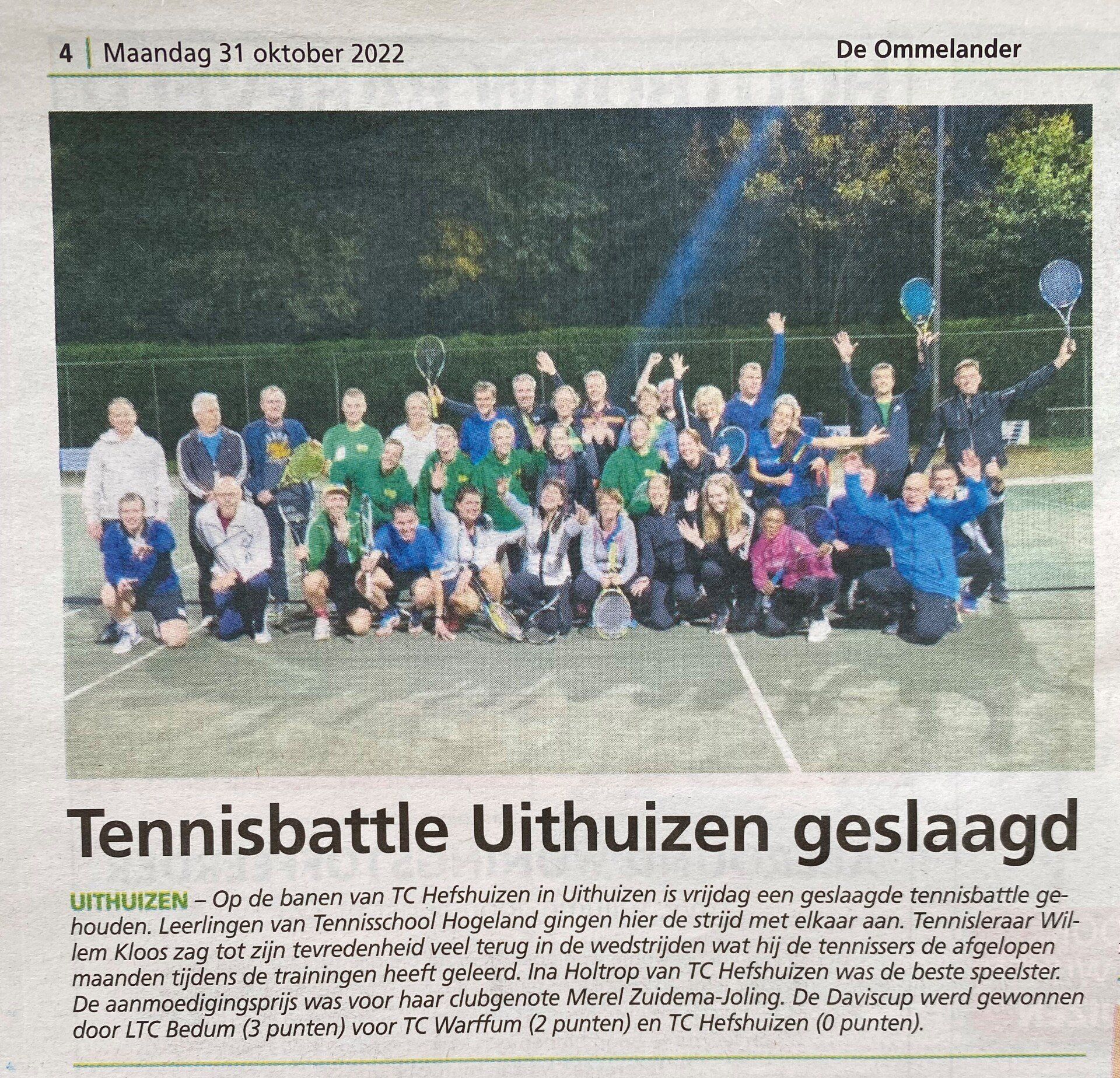 Spelers van de tennisverenigingen LTC Bedum, TC Warffum en TC Hefshuizen namen het tegen elkaar op. Er werd sportief gestreden. Traditiegetrouw werd de avond afgesloten met een Daviscup.